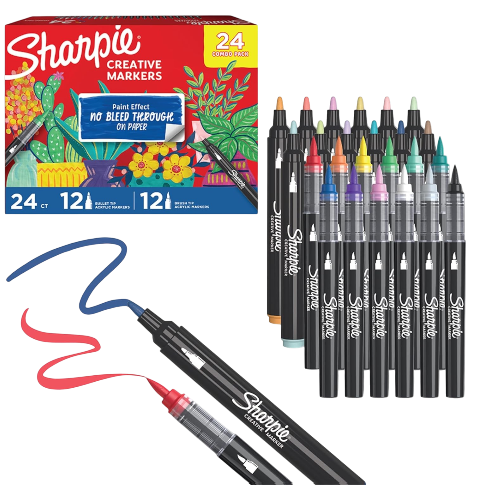 Sharpie Creative Markers 24-Count Water-Based Acrylic Bullet and Brush Tips Assorted Colors