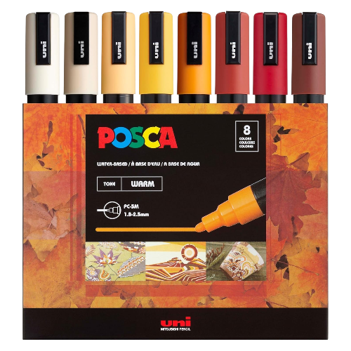 uni POSCA PC-5M Water-Based Paint Markers 8-Pack Medium Tip Warm Colors